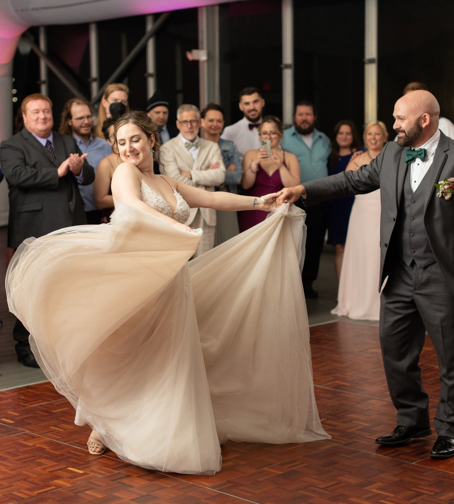 A choreographed first dance isn't just a spectacle; it's a bonding experience for you and your fiancé amidst the chaos of wedding planning. Being true to myself, I knew from the beginning I wanted a choreographed first dance. After selecting "Feeling Good” by Michael Bublé”, my partner and I decided to take dance lessons and choreograph a routine that showcased our personalities with just the right amount of flare this song called for. This wasn't just about impressing our guests—though their cheers and applause were heartwarming—but also about finding moments of joy and connection in the whirlwind of final preparations: we indeed only were able to take 4 lessons just 3 weeks before the wedding. Despite a rehearsal during the cocktail hour that was horrific (literally our worst practice), the dance turned out to be a highlight of our reception, providing stunning photo opportunities and a memory that we will cherish forever.